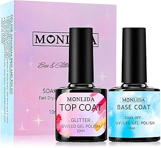 Monlida Base Coat Top Coat, Gel UV Nagellack, Primer Für Gel Nägel Set, Top Maniküre Kit 2x10ml (Funkeln Top Coat Set)