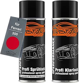 TRISTARcolor Autolack Spraydosen Set für Ferrari 300 Rosso Corsa Basislack Klarlack Sprühdose 400ml