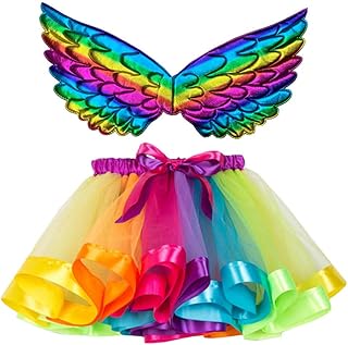 Kinder Mädchen Ballettröckchen Weihnachtsfeier Tanz Ballett Kleinkind Kostüm Rock + Flügel Sets Mesh Regenbogen Prinzessin Tutu Performance