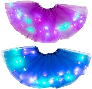 2pc Fee Kostüm Kinder, Mädchen Tutu Rock, LED Leuchten Glitter Star Rock Prinzessin Funkelndes Kleid Tutu,Süße Mädchen Prinzessin Fancy Fluffy Dancewear Ballett Tanzkostüm