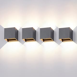 [4 Stücke] Elitlife 12W Außenwandleuchte Anthrazit 4000K LED Wandleuchten Innen Außen Aluminium Wandlampe IP65 Wasserdichte Auf und ab Einstellbarer Lichtstrahl LED Wandbeleuchtung, (Neutralweiß)