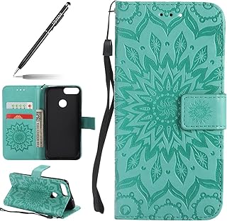 Uposao Kompatibel mit Handyhülle Huawei P Smart Leder Tasche Schutzhülle Handy Tasche Mandala Blumen Muster Book Case Leder Hülle Kunstleder Cover Klapphülle Flip Case Magnetverschluss,Grün