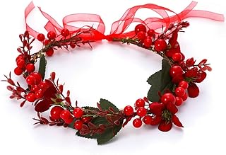 Unicra Weihnachten Krone Stirnband Blumengirlande Stirnband Rot Haarkranz Girlande Weihnachten Haarschmuck mit Band Party Festival Geschenk für Frauen und Mädchen