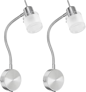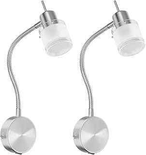 ledscom.de Leseleuchte/Wandleuchte MIRAS, Schwanenhals, Schalter, edelstahl matt, 1 x GU10 max. 25W, 2 Stk.