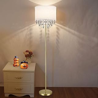 U'Artlines Stehlampe Wohnzimmer Kristall Stehleuchte,Stoffschirm und Metallbasis Höhe 155cm für Wohnzimmer,Schlafzimmer,Büro(Gold)