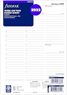 Filofax Taschenkalender 2022, 1 Woche auf 2 Seiten, Englisch